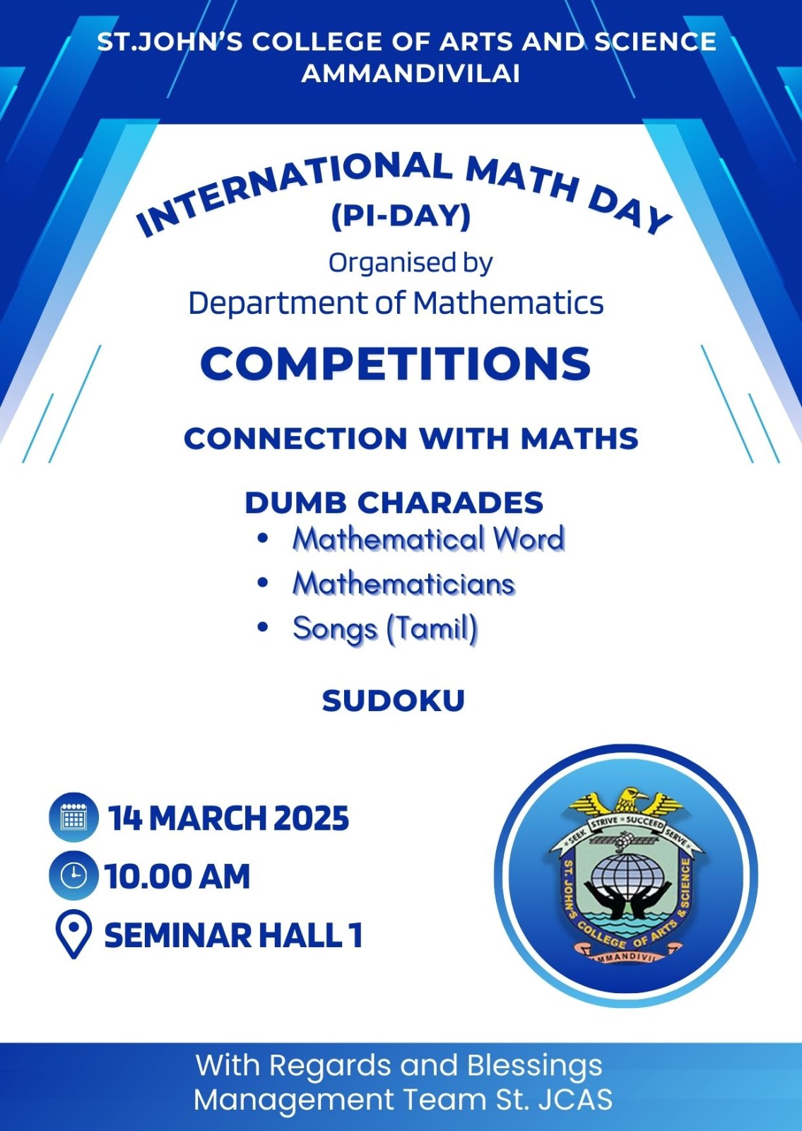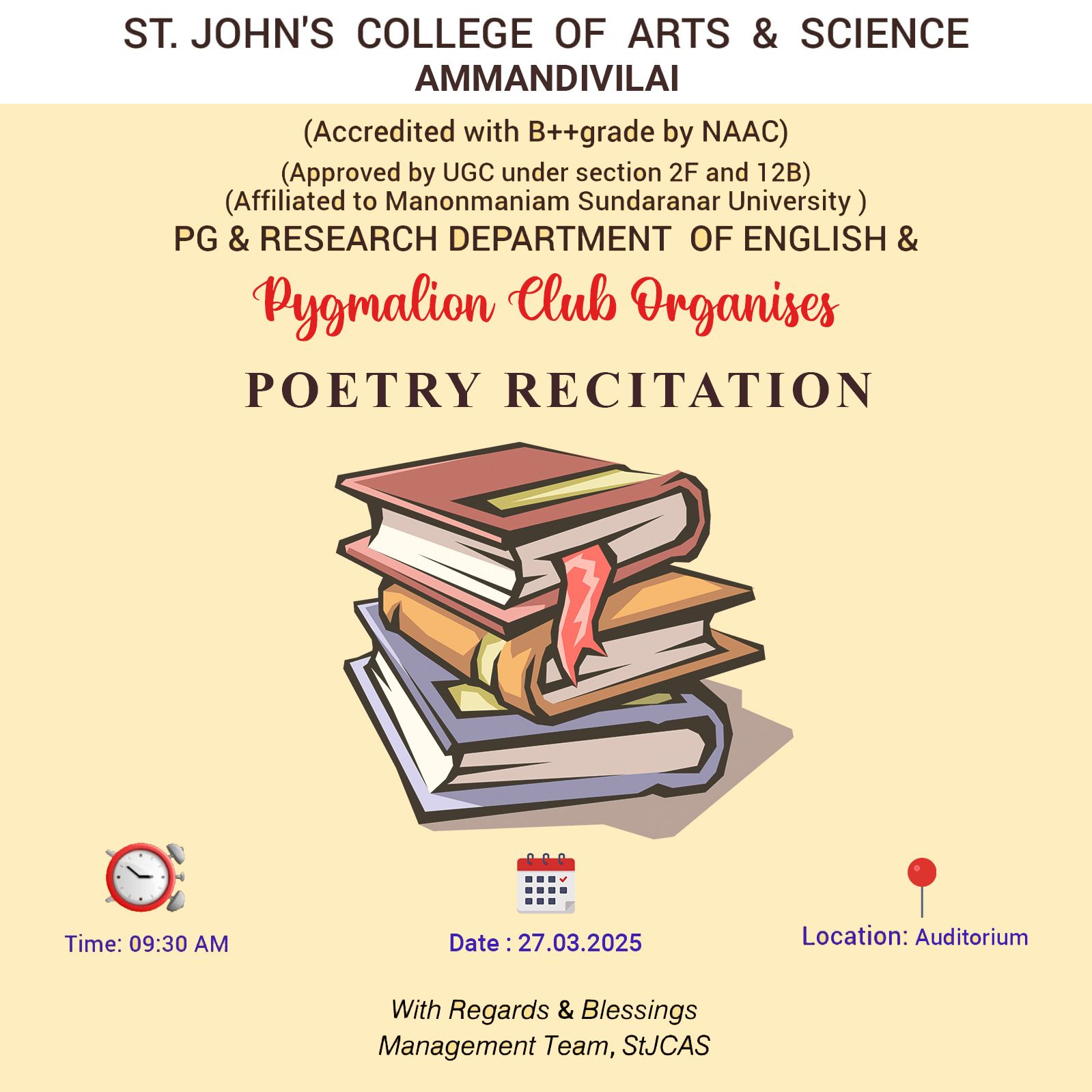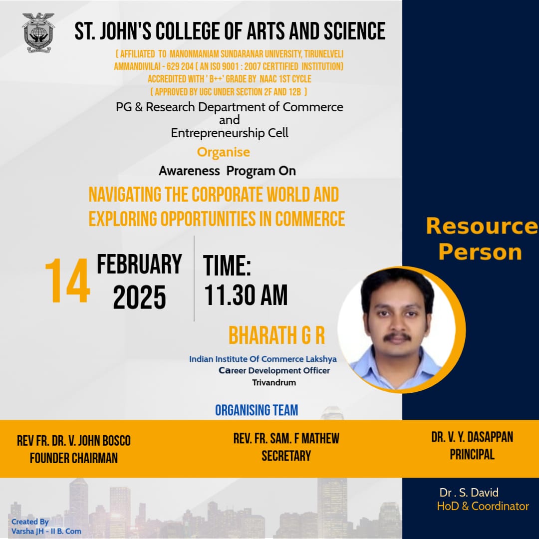 AT ST. JOHN'S COLLEGE OF ARTS AND SCIENCE, AMMANDIVILAI